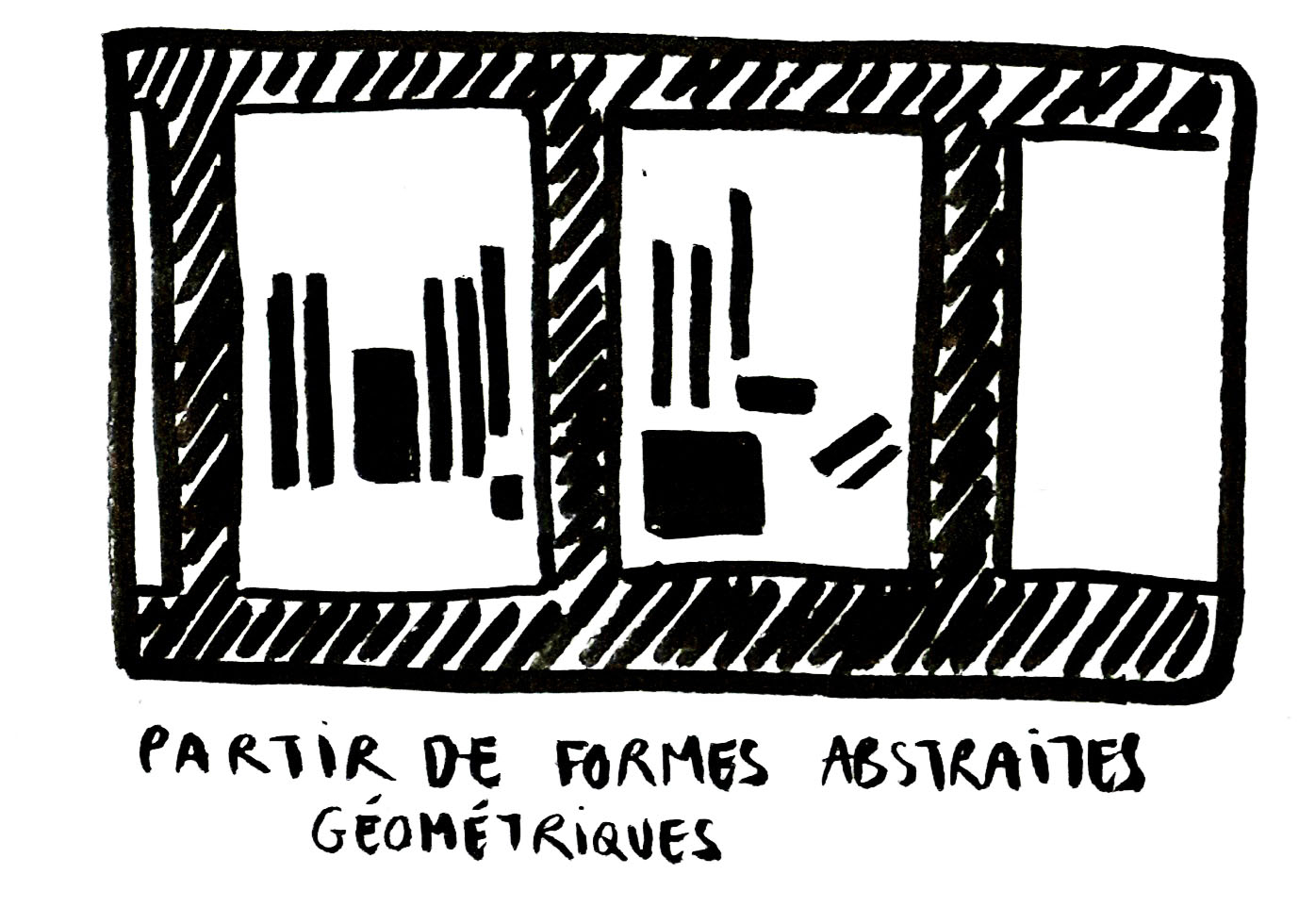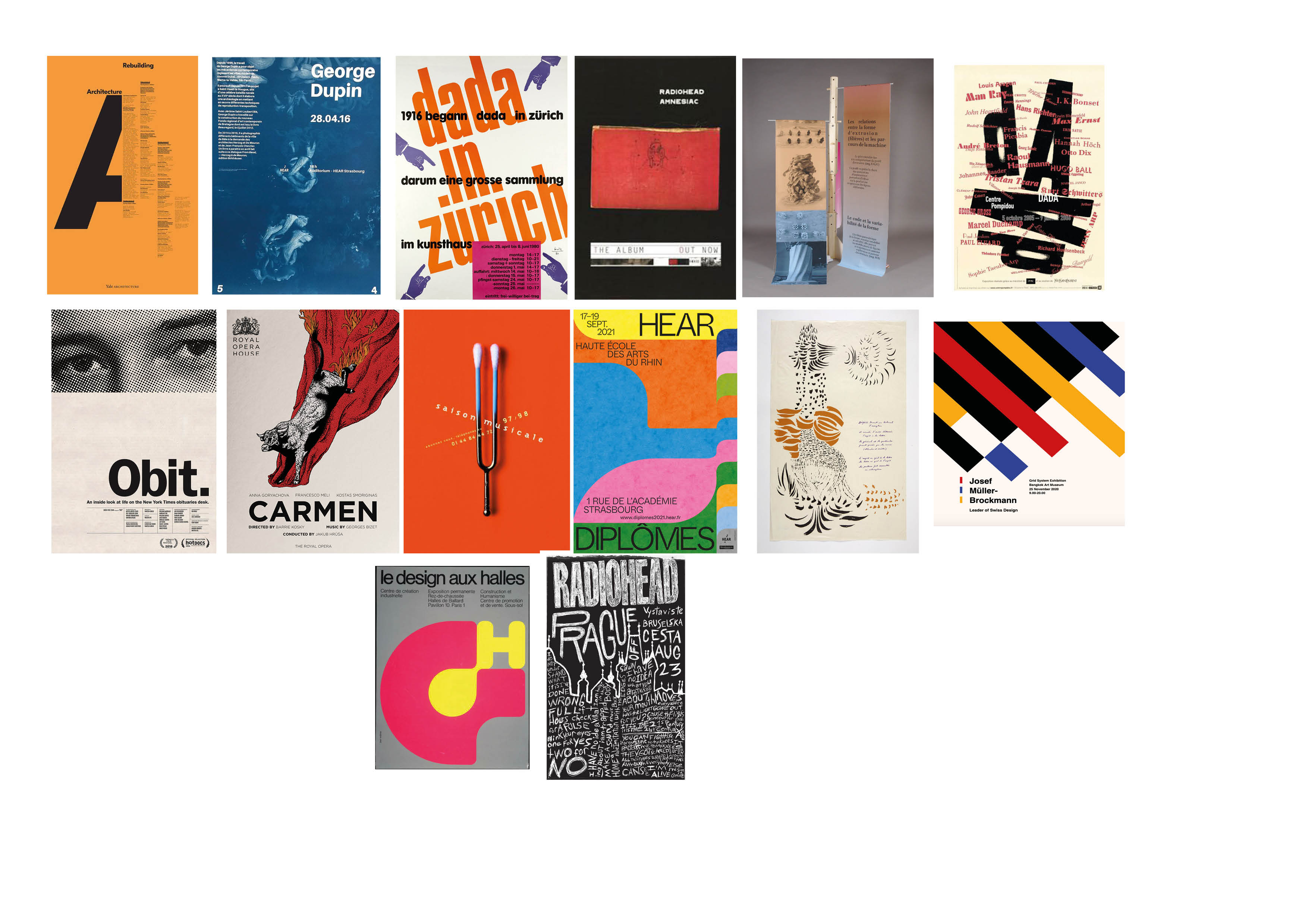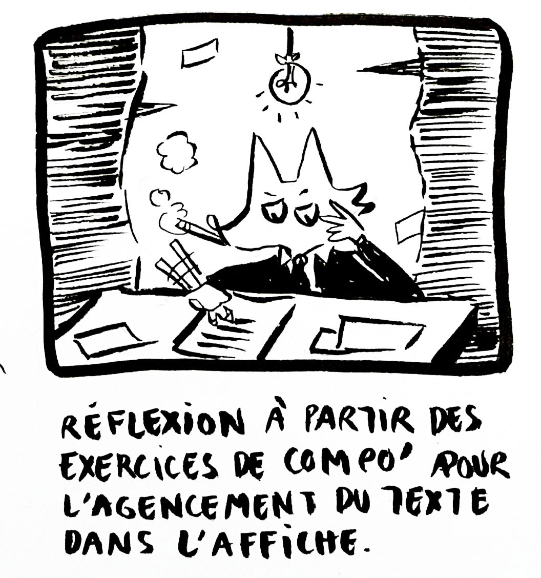 “Lors de cette séance, il a été question d’analyser diverses affiches jouant avec la typographie et l’agencement du texte dans l’espace. Les affiches de Pierre Neuman et de Michel Bierut en sont un parfait exemple, ainsi que les affiches pour Yale School of Architecture où la typographie n’est plus un simple texte mais une image également, dans le même esprit que le travail de Paula Scher. Ensuite, il a été question de s’entraîner à créer des compositions abstraites avec des carrés et rectangles noirs en les agençant dans un A4 tout en jouant sur les contrastes de forme, de taille et de proportion.”