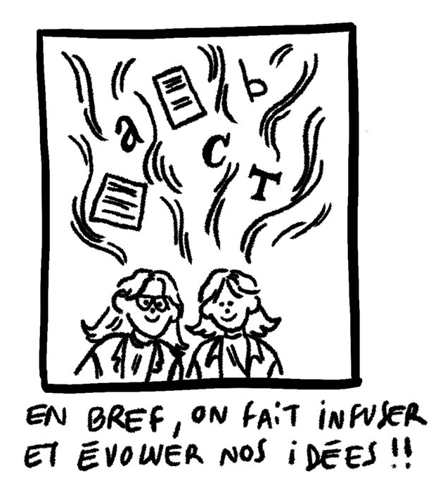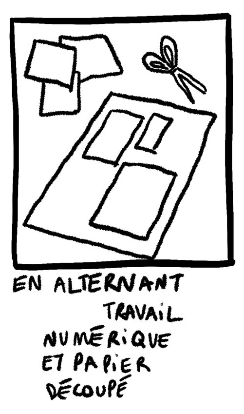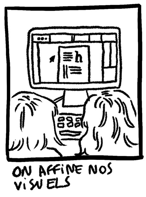 “Cette nouvelle séance a été consacrée à la poursuite des recherches de composition d'affiche. L'enjeu était d'expérimenter différents contrastes et texture de blocs de texte imprimés et de les disposer dans un espace 20% plus petit que le format A0 (format final). Il était aussi question d'explorer différents sens de lecture, de guider le regard à travers la page en jouant sur différentes échelles de corps typographiques. Ensuite, nous avons entamé un travail sur fichier numérique afin de mettre en forme les pistes dégagées.”